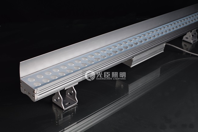 對于洗墻燈來說,72W這個(gè)功率是比較高的了,對燈具的散熱要求也高。光臣照明2018全新72W大功率洗墻燈,尺寸:66*40*1000mm,采用雙排燈珠設(shè)計(jì),燈體設(shè)計(jì)較原來的老款更加新穎好看,不再有臃腫的感覺,但是材料依然厚實(shí)。多鰭片散熱設(shè)計(jì),能夠更好地起到散熱效果。72W大功率洗墻燈使用的是歐司朗3030大功率芯片,光效很好,也可以定制科瑞、晶元等芯片。