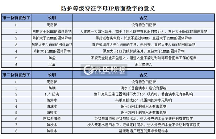 LED亮化燈具廠家光臣智科通過為大家整理的以上這兩張數(shù)據(jù)圖,可以讓對(duì)防護(hù)等級(jí)特特字IP后面的數(shù)字含義作一次簡單的解釋和分享,如果通過此篇文章還能解答您心中的疑問,可以通過以下聯(lián)系方式進(jìn)行電話咨詢。