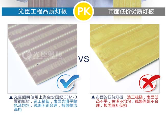 光臣照明所生產(chǎn)的LED線條燈選用上海金安國紀CEM-3覆銅板材及優(yōu)質(zhì)的鋁基板,其造工精細、表面光滑平整、色澤均勻、線路間距合理、板面整潔、導熱性好。精心的計劃不如一次實在的行動,如果您對線條燈價格存在疑問可以直接撥打客服直線:18826034118進行打樣驗貨。