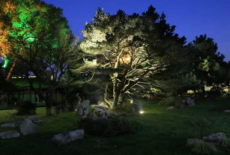 西湖國賓館的照明規(guī)劃,呈現(xiàn)移步換景,含蓄內(nèi)斂的效果。通過“動情、造景”的形式,強調(diào)雅致光影的夜間氛圍。