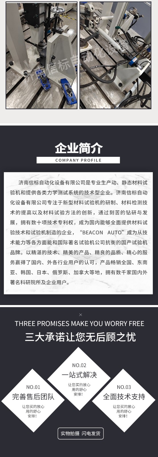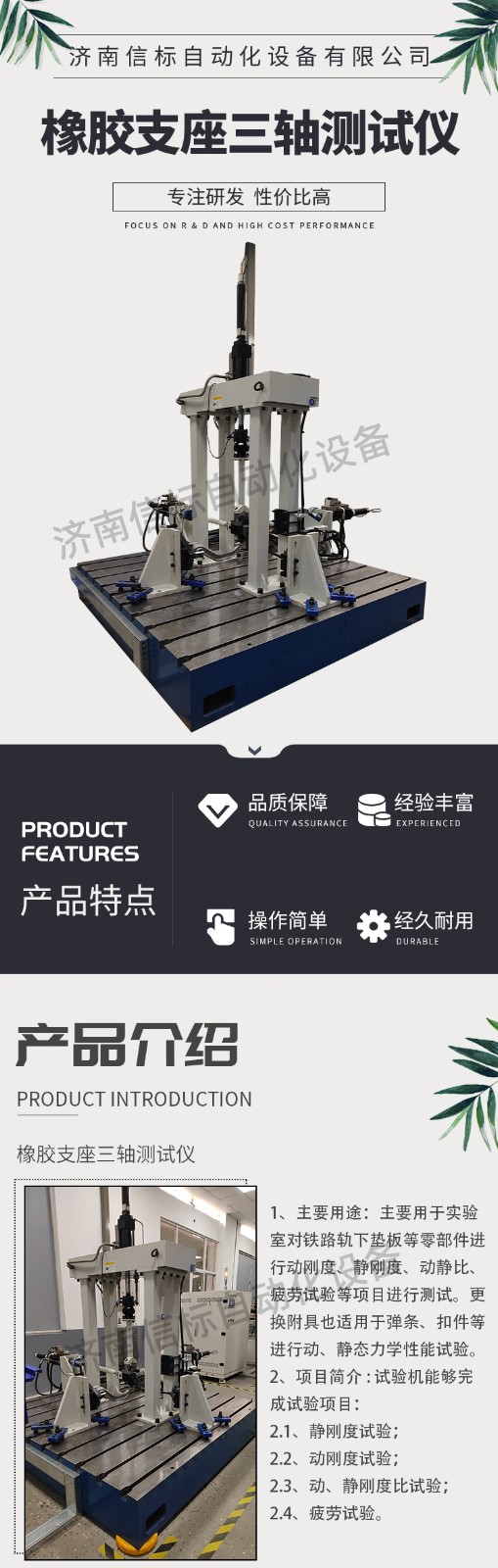 濟南信標自動化設(shè)備有限公司主要生產(chǎn):動靜態(tài)萬能疲勞試驗機,接骨板彎曲試驗機,縫合線拉伸疲勞試驗機,髖膝關(guān)節(jié)磨損試驗機,電子萬能試驗機、液壓萬能試驗機、巖石三軸、四軸,電液拉力試驗機,材料試驗機,高低溫蠕變,高低頻疲勞,拉伸、扭轉(zhuǎn)、杯突等二十多個系列兩千多個的品種。