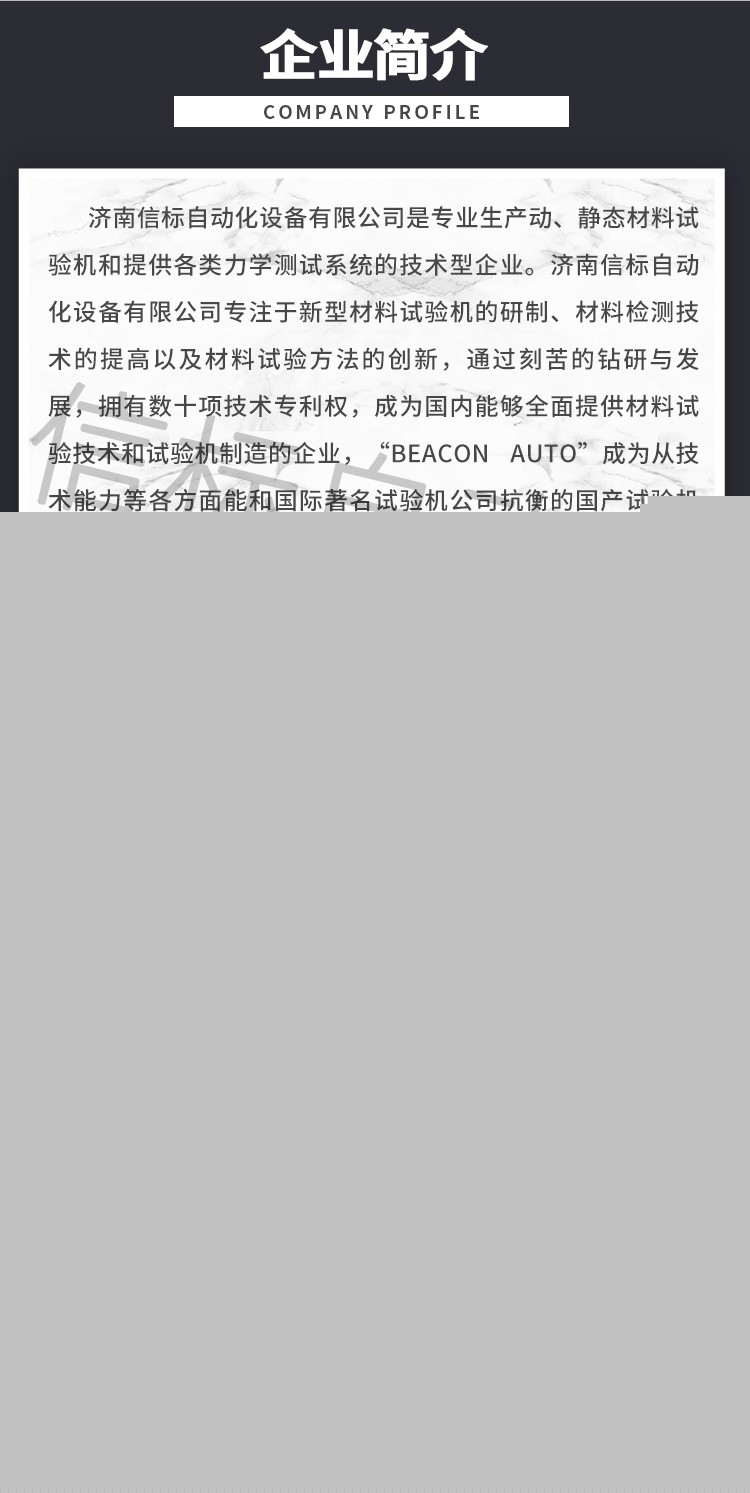 濟(jì)南信標(biāo)自動化設(shè)備有限公司主要生產(chǎn):動靜態(tài)萬能疲勞試驗機(jī),接骨板彎曲試驗機(jī),縫合線拉伸疲勞試驗機(jī),髖膝關(guān)節(jié)磨損試驗機(jī),電子萬能試驗機(jī)、液壓萬能試驗機(jī)、巖石三軸、四軸,電液拉力試驗機(jī),材料試驗機(jī),高低溫蠕變,高低頻疲勞,拉伸、扭轉(zhuǎn)、杯突等二十多個系列兩千多個的品種。
