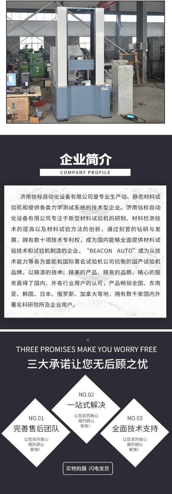 濟(jì)南信標(biāo)自動(dòng)化設(shè)備有限公司主要生產(chǎn):動(dòng)靜態(tài)萬能疲勞試驗(yàn)機(jī),接骨板彎曲試驗(yàn)機(jī),縫合線拉伸疲勞試驗(yàn)機(jī),髖膝關(guān)節(jié)磨損試驗(yàn)機(jī),電子萬能試驗(yàn)機(jī)、液壓萬能試驗(yàn)機(jī)、巖石三軸、四軸,電液拉力試驗(yàn)機(jī),材料試驗(yàn)機(jī),高低溫蠕變,高低頻疲勞,拉伸、扭轉(zhuǎn)、杯突等二十多個(gè)系列兩千多個(gè)的品種。