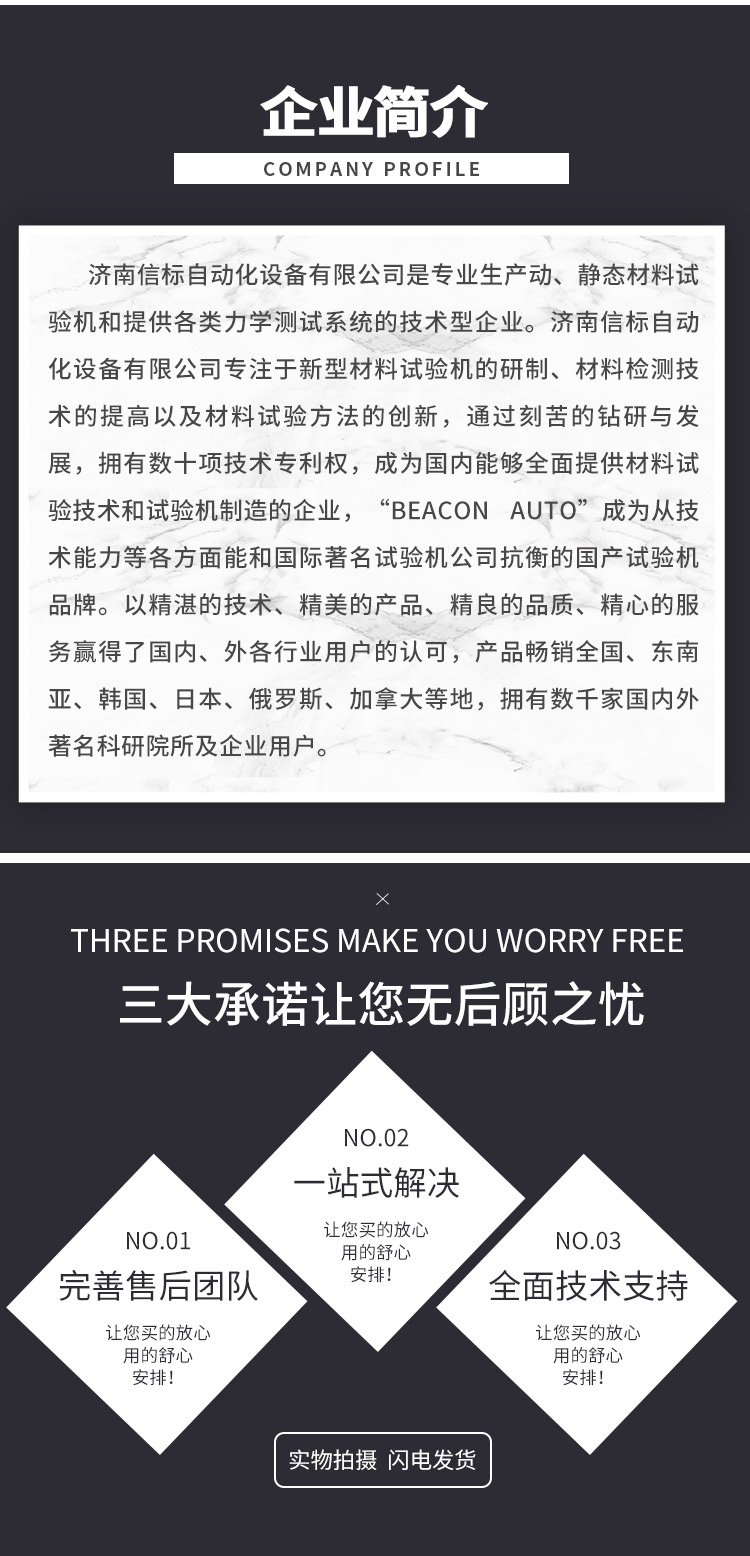 濟南信標自動化設備有限公司主要生產:動靜態(tài)萬能疲勞試驗機,接骨板彎曲試驗機,縫合線拉伸疲勞試驗機,髖膝關節(jié)磨損試驗機,電子萬能試驗機、液壓萬能試驗機、巖石三軸、四軸,電液拉力試驗機,材料試驗機,高低溫蠕變,高低頻疲勞,拉伸、扭轉、杯突等二十多個系列兩千多個的品種。