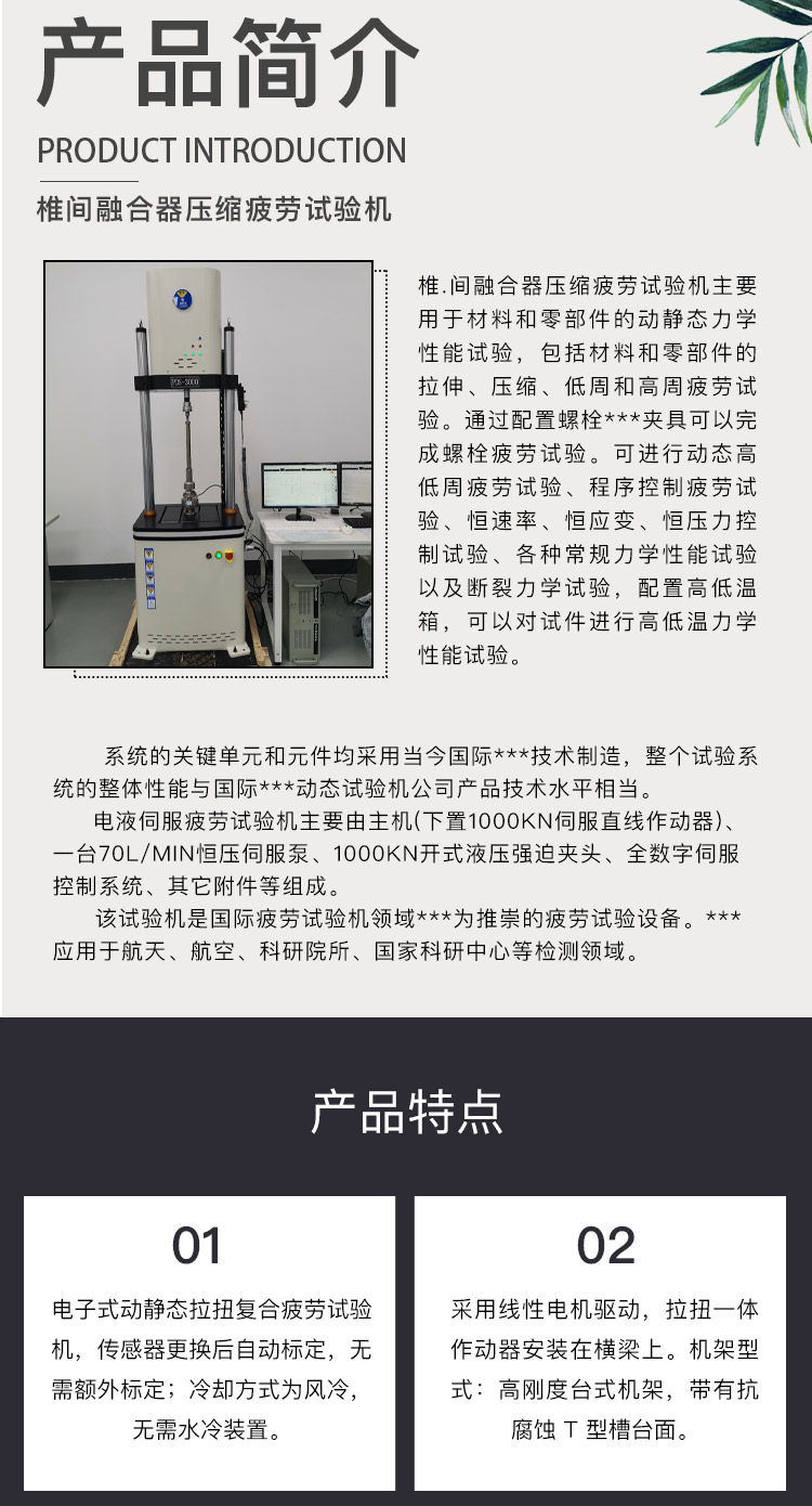 人造膝關(guān)節(jié)疲勞試驗機椎間融合器脊柱固定器拉伸壓縮彎曲扭轉(zhuǎn)測試