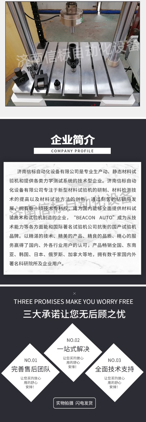 濟(jì)南信標(biāo)自動(dòng)化設(shè)備有限公司主要生產(chǎn):動(dòng)靜態(tài)萬(wàn)能疲勞試驗(yàn)機(jī),接骨板彎曲試驗(yàn)機(jī),縫合線拉伸疲勞試驗(yàn)機(jī),髖膝關(guān)節(jié)磨損試驗(yàn)機(jī),電子萬(wàn)能試驗(yàn)機(jī)、液壓萬(wàn)能試驗(yàn)機(jī)、巖石三軸、四軸,電液拉力試驗(yàn)機(jī),材料試驗(yàn)機(jī),高低溫蠕變,高低頻疲勞,拉伸、扭轉(zhuǎn)、杯突等二十多個(gè)系列兩千多個(gè)的品種。