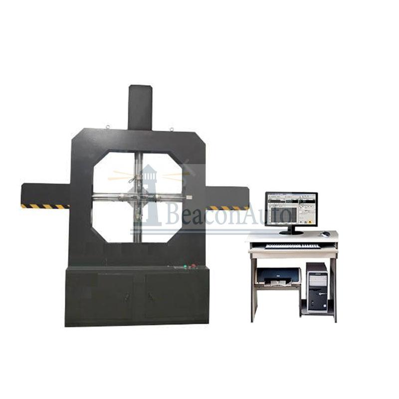 四軸同步應(yīng)變速率拉伸試驗(yàn)機(jī) 產(chǎn)品型號(hào):STMC-5L 四軸同步應(yīng)變速率拉伸試驗(yàn)機(jī)產(chǎn)品用途: 四軸同步應(yīng)變速率拉伸試驗(yàn)機(jī)實(shí)用新型屬于試驗(yàn)設(shè)備技術(shù)領(lǐng)域,特別涉及一種十字雙拉試驗(yàn)機(jī)。傳統(tǒng)的材料試驗(yàn)機(jī)只能測試單方向的拉伸強(qiáng)度,但是材料的應(yīng)用場景更多的是多向拉伸狀態(tài),因此以前的測試方法是分別做兩個(gè)方向的拉伸載荷測試然后再綜合計(jì)算數(shù)據(jù)。但是材料在實(shí)際多向形變的過程中各個(gè)方向的應(yīng)力是相互影響的:x向施加了應(yīng)力后,可能會(huì)讓y向的失效應(yīng)力比單獨(dú)施加y向的失效稍大,最多的應(yīng)用在汽車高強(qiáng)鋼板、鋁合金板、碳纖維面板等。 為了得到更加貼近應(yīng)用場景的數(shù)據(jù),行業(yè)內(nèi)也做了簡單的十字對(duì)等拉結(jié)構(gòu)拉以得到理論的數(shù)據(jù),但是這種結(jié)構(gòu)比較簡單,結(jié)構(gòu)自身的自由度較低,完全的剛性連接會(huì)很大程度干擾試驗(yàn)的結(jié)果,樣品變形產(chǎn)生的拉伸力角度會(huì)導(dǎo)致剪切力產(chǎn)生,如果不能消除這個(gè)剪切力,那試驗(yàn)結(jié)果就與實(shí)際數(shù)據(jù)越偏離越大。