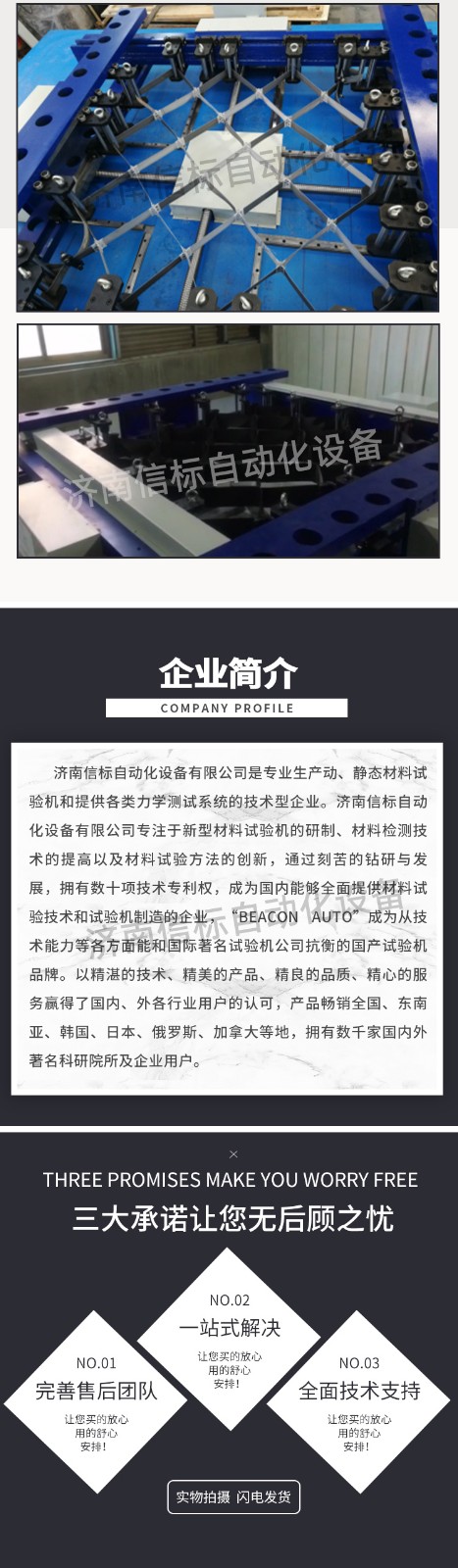 濟(jì)南信標(biāo)自動(dòng)化設(shè)備有限公司主要生產(chǎn):動(dòng)靜態(tài)萬能疲勞試驗(yàn)機(jī),接骨板彎曲試驗(yàn)機(jī),縫合線拉伸疲勞試驗(yàn)機(jī),髖膝關(guān)節(jié)磨損試驗(yàn)機(jī),電子萬能試驗(yàn)機(jī)、液壓萬能試驗(yàn)機(jī)、巖石三軸、四軸,電液拉力試驗(yàn)機(jī),材料試驗(yàn)機(jī),高低溫蠕變,高低頻疲勞,拉伸、扭轉(zhuǎn)、杯突等二十多個(gè)系列兩千多個(gè)的品種。