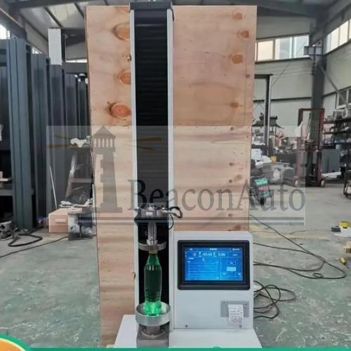 WDY-1礦泉水瓶頂壓平壓側壓強度測試儀 產(chǎn)品型號:WDY-1 產(chǎn)品用途:WDY-1礦泉水瓶頂壓平壓側壓強度測試儀用于檢測PET瓶的頂壓強度、頂壓變形、平壓強度和側壓強度。廣泛應用于橡膠、塑料、紡織物、防水材料、無紡布等非金屬材料及金屬絲、金屬箔、金屬片的壓縮力學性能試驗。 礦泉水瓶頂壓平壓側壓強度測試儀產(chǎn)品特點: 1、采用高精度、全數(shù)字調速系統(tǒng)及精密減速機, 驅動精密絲杠副進行試驗,實現(xiàn)試驗速度的大范圍調節(jié), 試驗過程噪音低、運行平穩(wěn)。 2、萬向節(jié)采用十字插銷結構,而且具有擺角限制功能, 一方面便于試樣夾持,保證試驗同心度, 另一方面很好的消除了不規(guī)則試樣對傳感器的影響。 3、觸摸鍵操作方式,液晶顯示器實時顯示。 顯示界面可顯示試驗方法選擇界面、試驗參數(shù)選擇界面、試驗操作及結果顯示界面和曲線顯示界面,方便快捷。 4、可實現(xiàn)試樣裝夾時橫梁快慢升降調整,具有過流、過壓、過載等保護裝置。 5、選配微機接口,可外接微機實現(xiàn)試驗過程的控制及數(shù)據(jù)的存儲、打印。