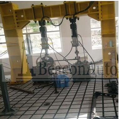 驅(qū)動車橋疲勞試驗(yàn)機(jī) 前后橋耐久疲勞試驗(yàn)臺 驅(qū)動車橋疲勞試驗(yàn)機(jī) 前后橋耐久疲勞試驗(yàn)臺產(chǎn)品用途: PMS-500驅(qū)動車橋疲勞試驗(yàn)機(jī) 前后橋耐久疲勞試驗(yàn)臺主要適用于對各種大型零部件如:橋梁、桁架、汽車底盤、前后橋、機(jī)車車架、底盤及各種混凝土結(jié)構(gòu)件進(jìn)行靜態(tài)壓縮試驗(yàn)及動態(tài)單向脈動疲勞試驗(yàn)。該機(jī)具有設(shè)計(jì)可靠、操作簡單、節(jié)約能源,運(yùn)行成本低廉等顯著特點(diǎn)。 驅(qū)動車橋疲勞試驗(yàn)機(jī) 前后橋耐久疲勞試驗(yàn)臺主要技術(shù)指標(biāo): 1、動態(tài)試驗(yàn)力:1000kN ; 2、靜態(tài)試驗(yàn)力:1000kN,示值精度±1%(20%FS起示值相對誤差); 3、工作頻率范圍:2-8Hz(無級可調(diào)); 4、脈動器排量:800ml/次; 5、1000kN作動器基本參數(shù) 5.1振幅:15mm; 5.2活塞行程:120mm; 5.3絲杠伸出量:450mm; 5.4加長管長度:500mm、1000mm; 5.5計(jì)算機(jī)滿量程顯示值:500.0; 5.6另有25kN、50kN、100kN、250kN、500kN等規(guī)格作動器(特殊配件,需單獨(dú)購買)。 6、電機(jī)功率:22kW。